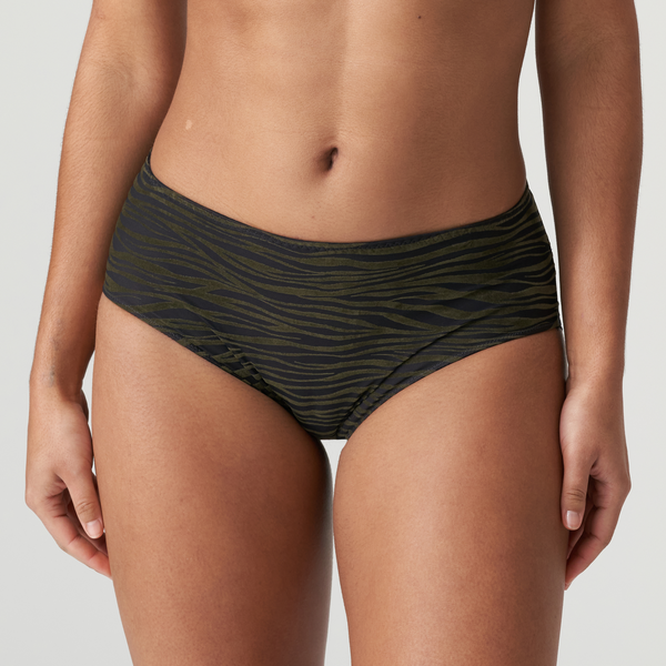 Vrouwelijke tailleslip met velvetlook. Afgewerkt met tule aan de billen. Dark Woods is een stijlvolle mix van olijfgroen, donkergrijs en een vleugje koperglans.